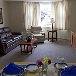 Each apartment is individually climate controlled and has generously sized rooms, a walk-in closet, and kitchenette with dining area. One bedroom units include an over-sized living room and a private bath with sit-in shower. Shared units have two private studios with a shared kitchenette and bathroom with sit-in shower. Short Term or Respite Suites are also available to meet your individual needs. Our apartments are just awaiting your special touches to make them feel like home.