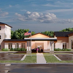 Harmony Gardens provides a comfortable living environment consisting of two connected buildings. The first building is a skilled nursing facility that will also include town center amenities. The second building is a combination of independent and assisted living apartments, assisted living care suites, and assisted living memory care residences.