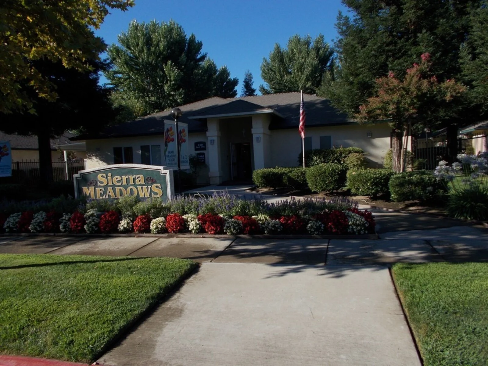 Sierra Meadows offers peaceful 55+ apartment living in a welcoming, gated community designed for comfort, connection, and active lifestyles. This well-maintained senior community features beautifully landscaped grounds with walking paths and rose gardens, along with inviting outdoor spaces where residents can relax on private patios or enjoy social activities like shuffleboard with neighbors and friends.